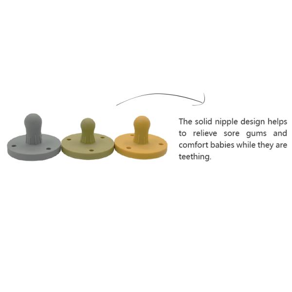 The solid nipple design helps to relieve sore gums and comfort babies while they are teething.