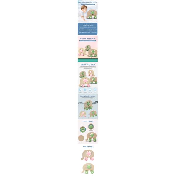 SY-013 Elephant silicone car toy 100% Food Grade Silicone And Wooden Teether Baby toy
